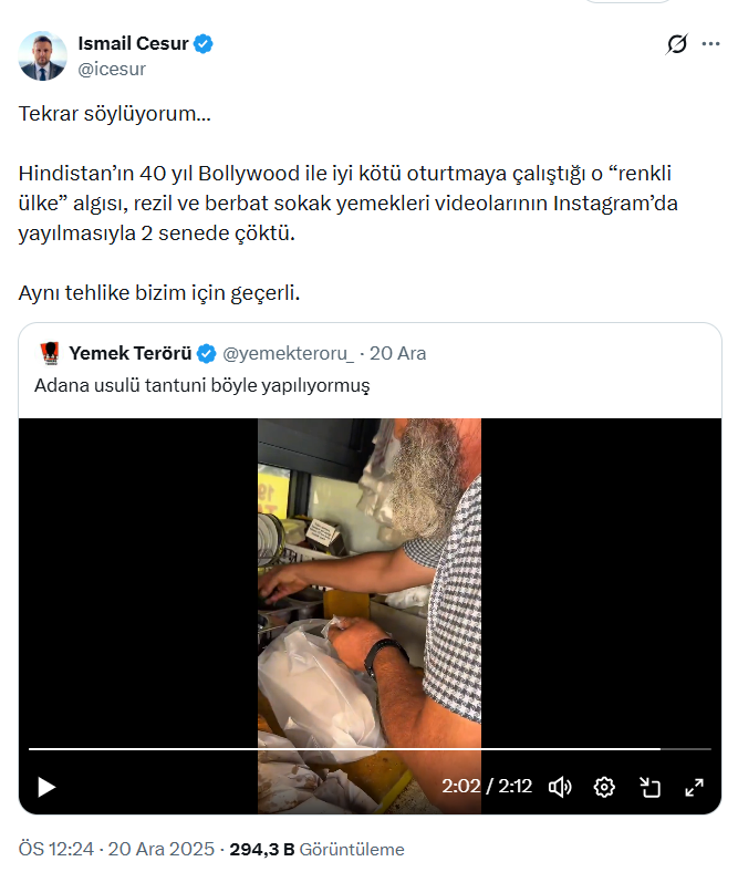 Sosyal medyada viral olan Adana usulü tantuni yemek videosu, Cumhurbaşkanı Danışmanı İsmail Cesur’un tepkisini çekti.